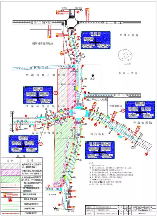 松坪站是13號線與24號線(規(guī)劃中)的換乘站。車站南接科興站,北接西麗火車站,總長308.1米。本次松坪站第一階段交通疏解主要施工內(nèi)容包括:綠化遷移、管線遷改、新建臨時道路、交通設(shè)施的拆除及新建。