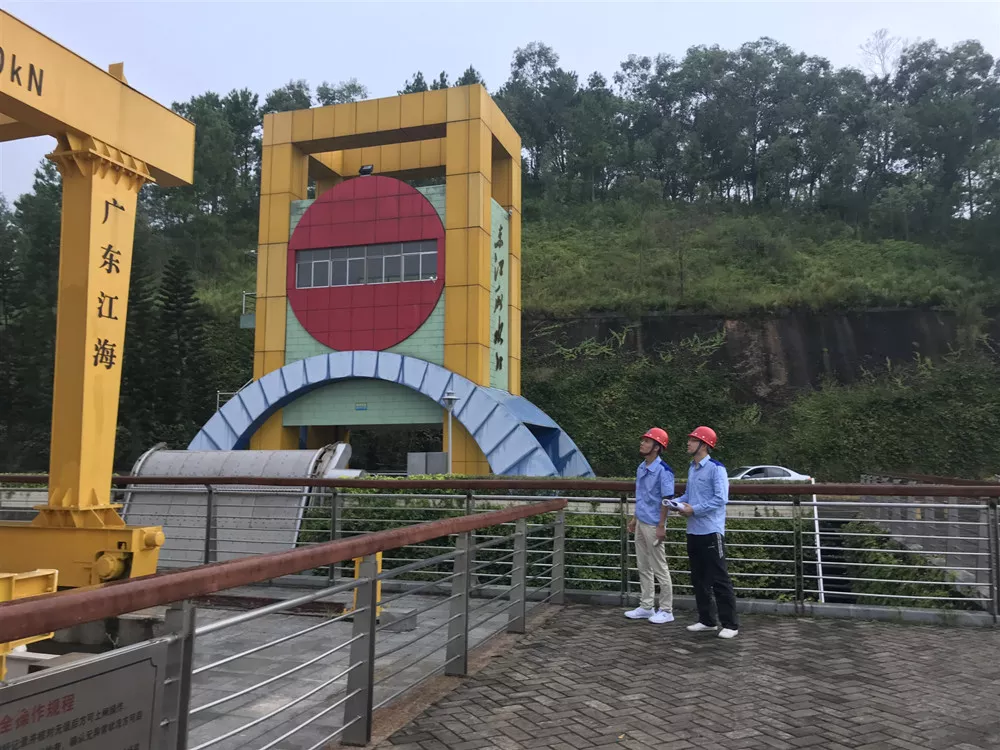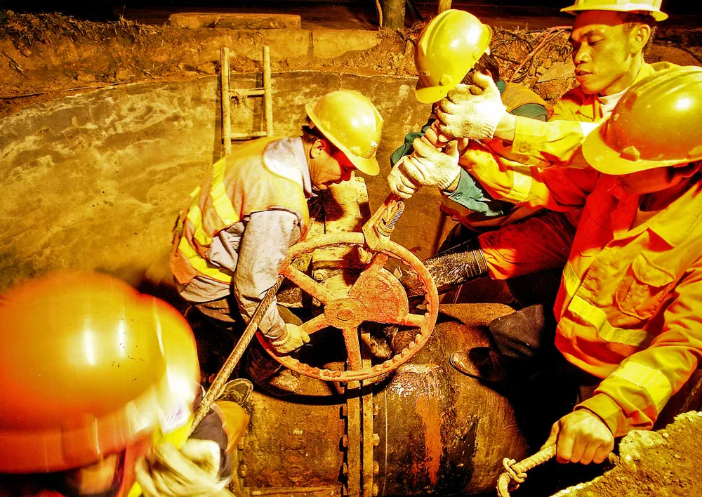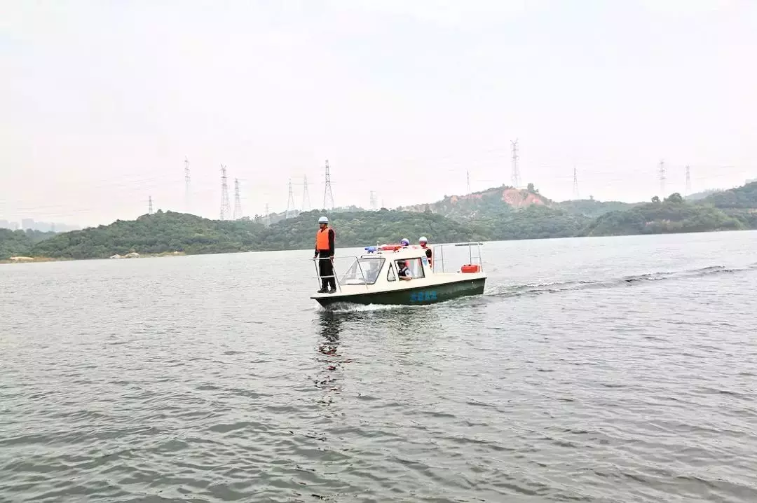 他們拿著手電筒對(duì)水庫進(jìn)行巡查