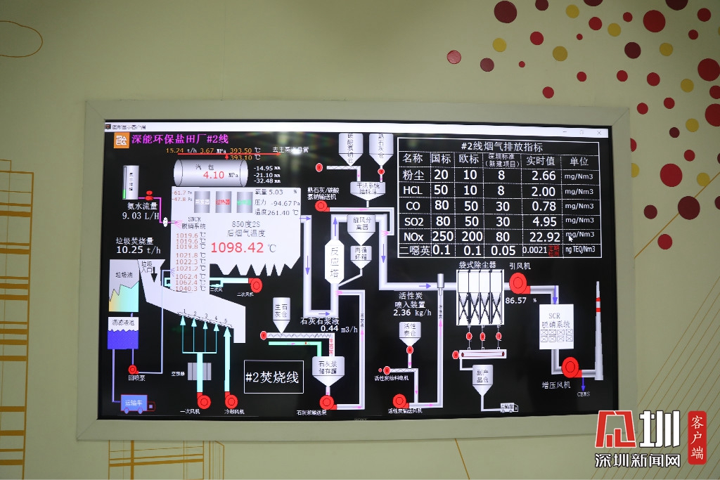 廠內(nèi)還設(shè)有煙氣指標(biāo)電子屏,屏上可以看到粉塵、氯化氫、一氧化碳等多項(xiàng)煙氣排放實(shí)時(shí)數(shù)值。據(jù)介紹,深圳實(shí)行的排放標(biāo)準(zhǔn)遠(yuǎn)遠(yuǎn)高于國(guó)家標(biāo)準(zhǔn)和歐盟標(biāo)準(zhǔn)。從發(fā)電廠外望去,從煙囪上方看不到一點(diǎn)煙霧。