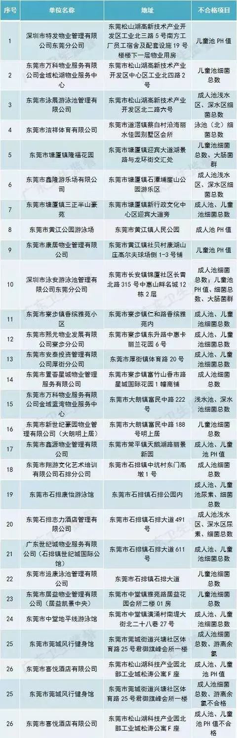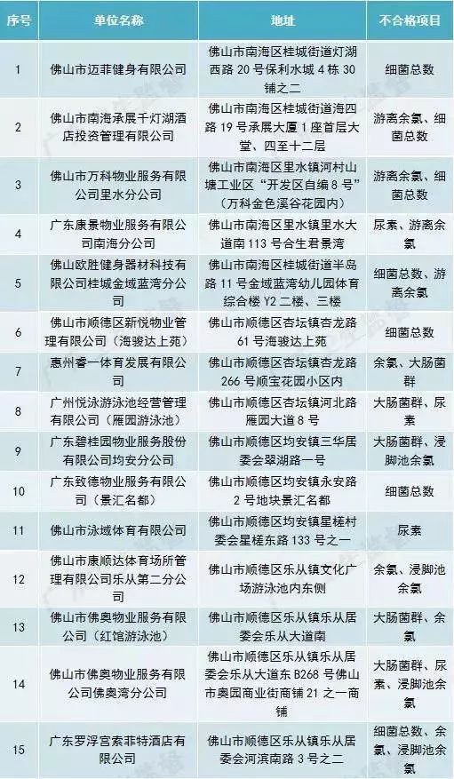 廣東省部分城市游泳場所水質抽檢不合格場所名單(第一批)