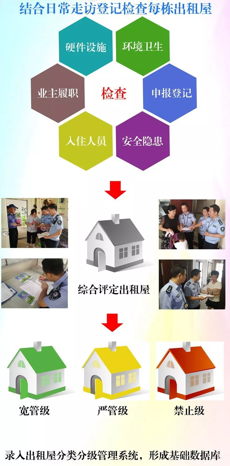 嚴(yán)格管理。社區(qū)巡查力量對(duì)嚴(yán)管級(jí)出租屋每周走訪巡查一次,發(fā)現(xiàn)義務(wù)申報(bào)人未按要求申報(bào)居住信息、發(fā)現(xiàn)各類(lèi)安全隱患信息及時(shí)通報(bào)有關(guān)職能部門(mén)處置。