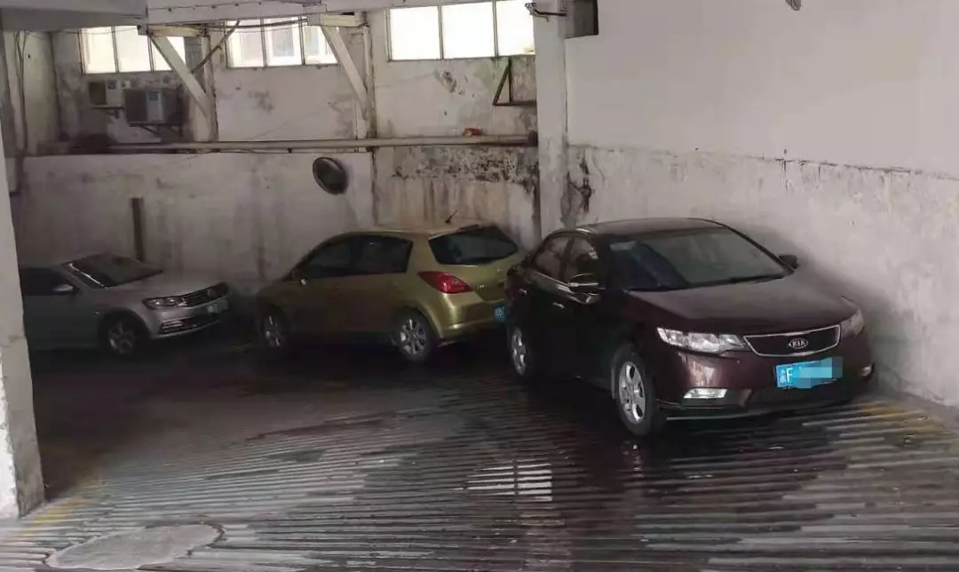 在粵鵬大廈停車場(chǎng)坡道處,一路都有車輛停放于此。