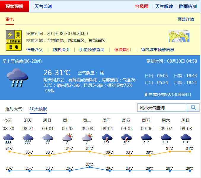 見圳客戶端·深圳新聞網(wǎng)2019年8月30日訊 今天多云間陰天,轉(zhuǎn)中到大雨,局部暴雨;26-31℃;偏東風(fēng)2-3級,陣風(fēng)6-7級;濕度75%-95%。臺風(fēng)“楊柳”未來趨向越南,繼續(xù)遠離我市。預(yù)計31日至9月1日深圳多雷雨,局部暴雨,2-3日有短時陣雨。