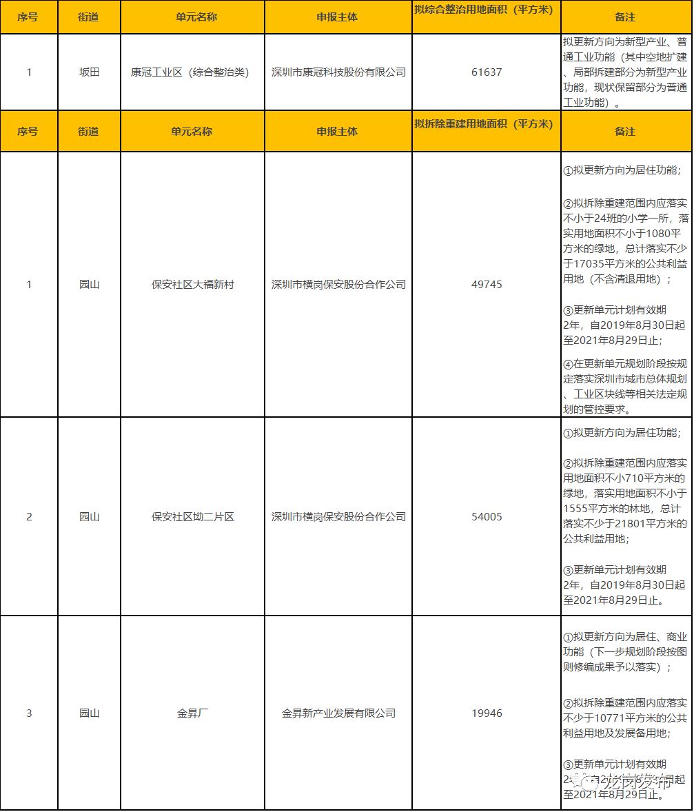 1、本表所列的城市更新單元須按照城市更新相關政策完成城市更新單元規(guī)劃編制及項目實施主體確認等工作后方可實施開發(fā)建設。