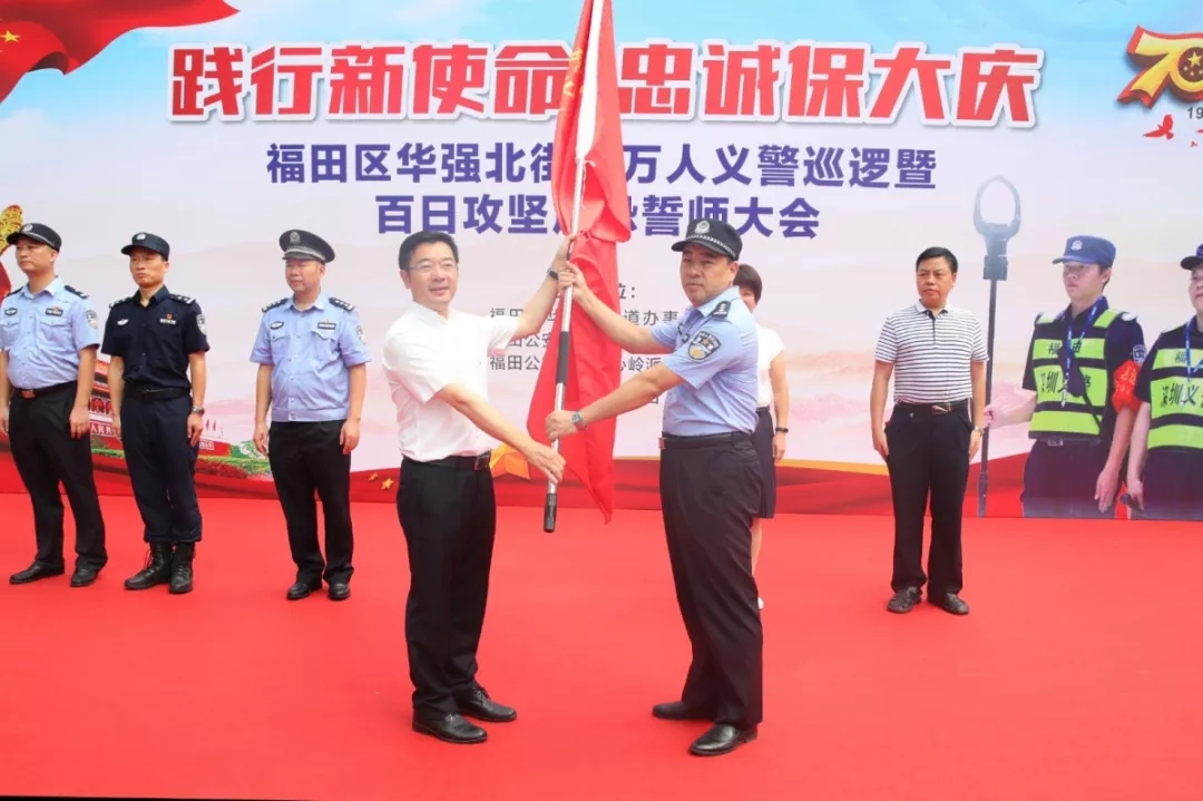 在大會(huì)上,福田公安分局副局長(zhǎng)譚慶彬表示:“組織義警隊(duì)伍開展大巡邏大防控,重點(diǎn)在于拓寬人民群眾參與社會(huì)治安防控渠道,最大限度挖掘群防群治社會(huì)資源,形成多層次、全方位的群防群治網(wǎng)絡(luò),進(jìn)一步實(shí)現(xiàn)各類警情持續(xù)下降、治安難點(diǎn)有效整治、立體防控更加完善、安保維穩(wěn)平穩(wěn)可控、人民滿意度不斷提升的工作目標(biāo)。我們要最大限度地動(dòng)員和實(shí)現(xiàn)社會(huì)力量參與平安建設(shè),筑牢社會(huì)治安防控體系,以制度化、規(guī)范化、精細(xì)化、專業(yè)化的管理,鍛造出一支拉得出、沖得上、打得贏的華強(qiáng)北‘義警’鐵軍,為福田社會(huì)經(jīng)濟(jì)發(fā)展?fàn)I造更加安全、平穩(wěn)、有序的生產(chǎn)、生活環(huán)境。”