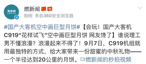 近日,C919機(jī)組在空中給大家畫了個(gè)巨型月餅