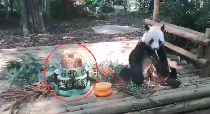 工作人員特地從四川空運(yùn)了一批新鮮的方竹筍,還做了個(gè)生日蛋糕給他