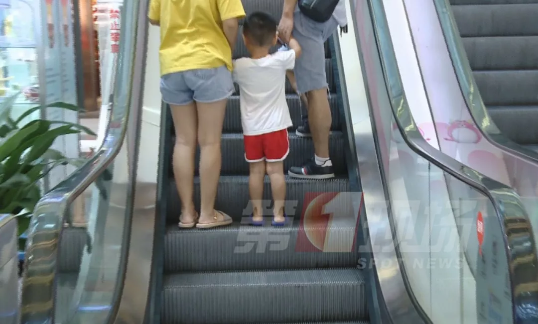 在商場(chǎng)的自動(dòng)扶梯上,兒子的洞洞鞋被卷進(jìn)了扶梯的空隙導(dǎo)致腳拔不出來(lái)。