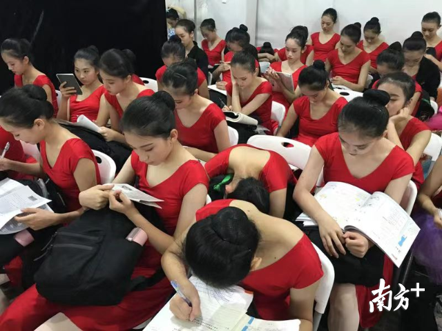 在晚會(huì)的另一個(gè)彩排候場(chǎng)點(diǎn),36名來(lái)自深圳高級(jí)中學(xué)舞蹈團(tuán)的參演學(xué)生在彩排和演出間隙仍然抓緊學(xué)習(xí)。深圳高級(jí)中學(xué)舞蹈團(tuán)老師高潔說,這是舞團(tuán)候場(chǎng)的常態(tài),“為了不耽誤學(xué)習(xí),經(jīng)常得抓緊間隙進(jìn)行學(xué)習(xí)?!?/p>