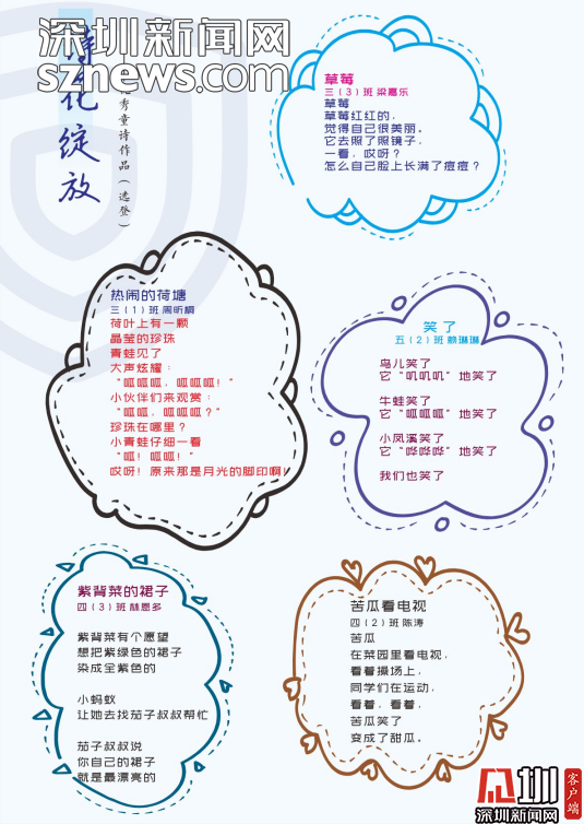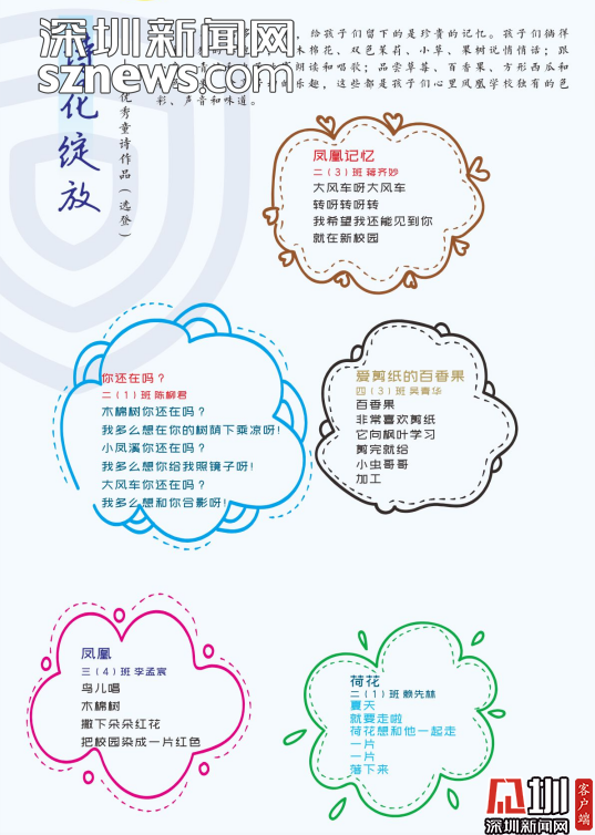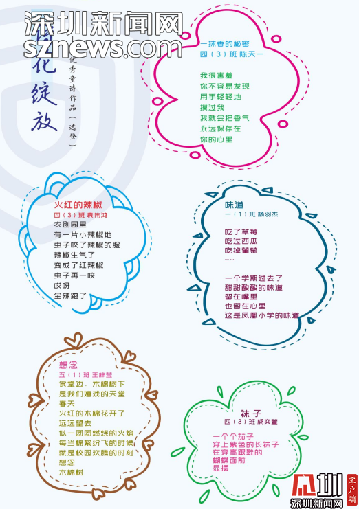 編委會的老師感慨,《童詩鳳凰》這本詩集是扎根于詩意校園的土壤結(jié)出的詩花。是鳳凰的孩子們在荷塘邊、在草莓地、在蘑菇亭、在好玩的地方用心聆聽大自然后,最真實最動人的表達。