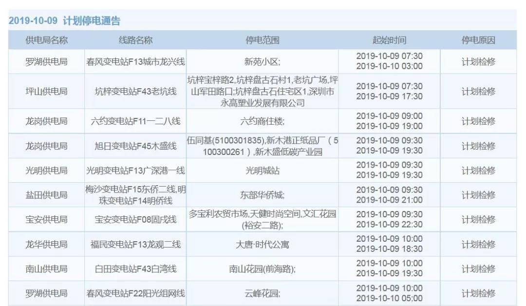 注意了!10月9日-10日深圳這些地方將停電停水