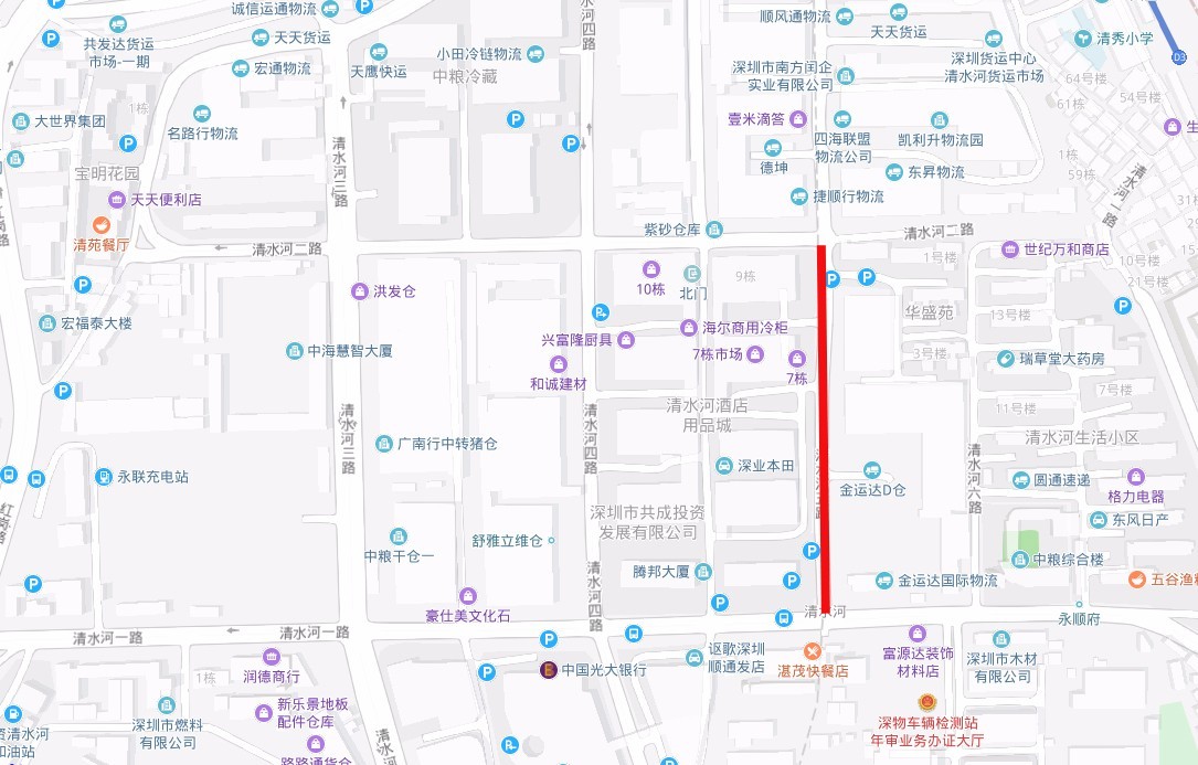 因地鐵14號(hào)線清水河站工程施工需要,2019年10月29日至2020年4月26日共180天,封閉清水河五路(清水河一路至清水河二路段)進(jìn)行施工。原經(jīng)此路段通行的車輛,可改沿清水河四路或周邊其它道路通行。2019年10月29日至2020年4月26日共180天,清水河五路(清水河二路至環(huán)倉(cāng)路段)由南北雙向通行調(diào)整為由南向北單向通行。2019年10月29日至2020年4月26日共180天,清水河二路(深圳物流集團(tuán)有限公司內(nèi)部通道至清水河五路段)由東西雙向通行調(diào)整為由西向東單向通行。2019年10月29日至2020年4月26日共180天,環(huán)倉(cāng)路(清水河五路至深圳物流集團(tuán)有限公司內(nèi)部通道段)由東西雙向通行調(diào)整為由東向西單向通行。