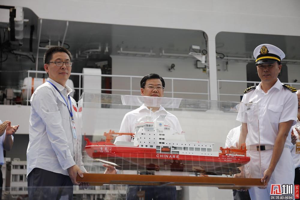 雪龍?zhí)柎L(右)向深圳贈送禮物