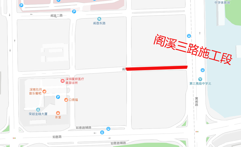 2019年10月28日至2020年1月31日共95天,封閉沙田圍三街(如意路口至閣溪三路口段)進(jìn)行施工。原經(jīng)此路段通行的車輛,可改沿沙田圍二街或周邊其它道路通行。