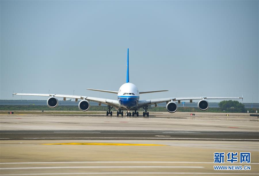 10月27日,南方航空空中客車A380客機抵達深圳機場。當日下午,由全球最大寬體客機——空中客車A380執(zhí)飛的南航CZ3153次航班由深圳起飛前往北京,標志著這款“空中巨無霸”機型重返深圳機場。南航曾在2014年5月開始啟用A380執(zhí)飛京深航線,后因動態(tài)運力調(diào)配停飛。新華社記者毛思倩攝