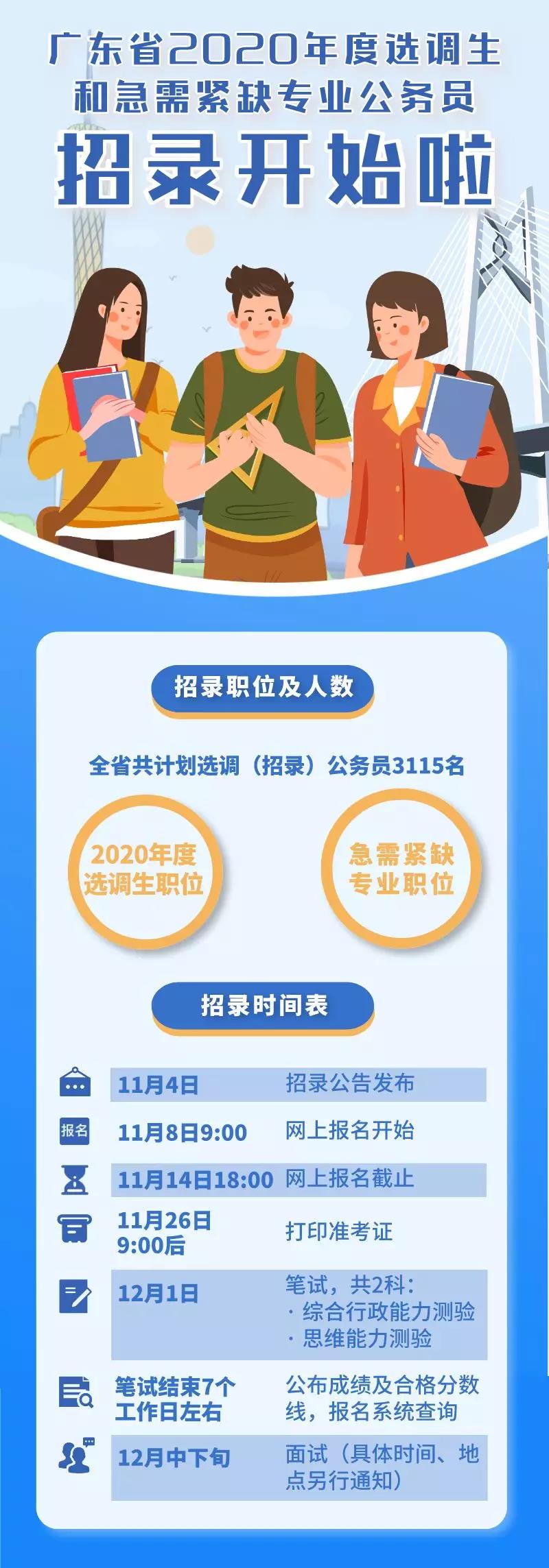 原標(biāo)題:廣東省2020年度選調(diào)生和急需緊缺專(zhuān)業(yè)公務(wù)員招錄11月8日開(kāi)始報(bào)名