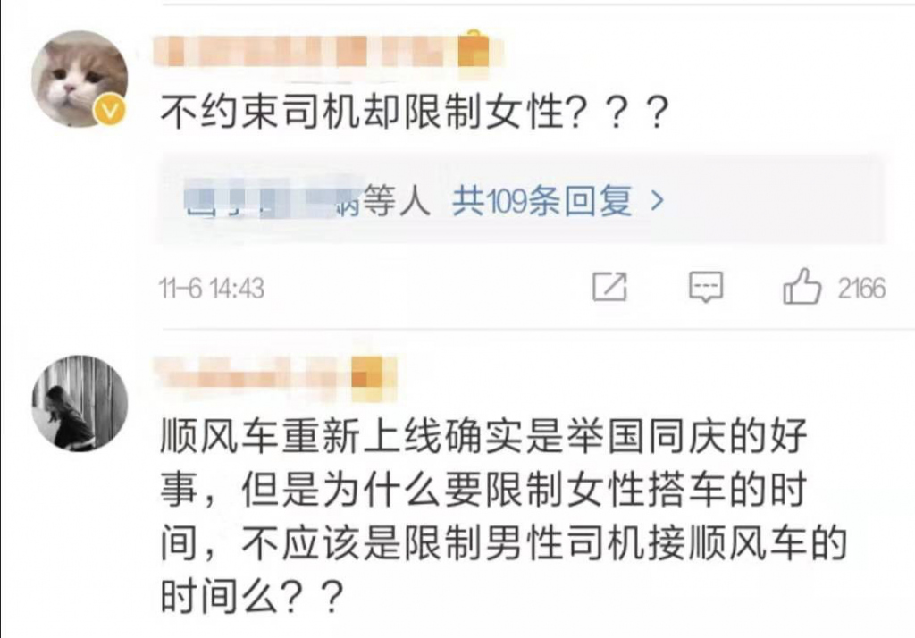 相較于其他安全措施,20:00后不接女性訂單的規(guī)定,引發(fā)的爭(zhēng)議尤其大。很多人覺得,這是對(duì)女性的冒犯和隱性歧視。因?yàn)橛星败囍b、怕出事后要擔(dān)責(zé),干脆讓女性無法方便地打車,屬于典型的因噎廢食。