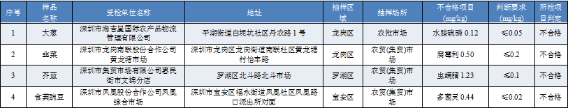深圳這四家菜場檢出大蔥、韭菜、芥藍(lán)農(nóng)藥超標(biāo)