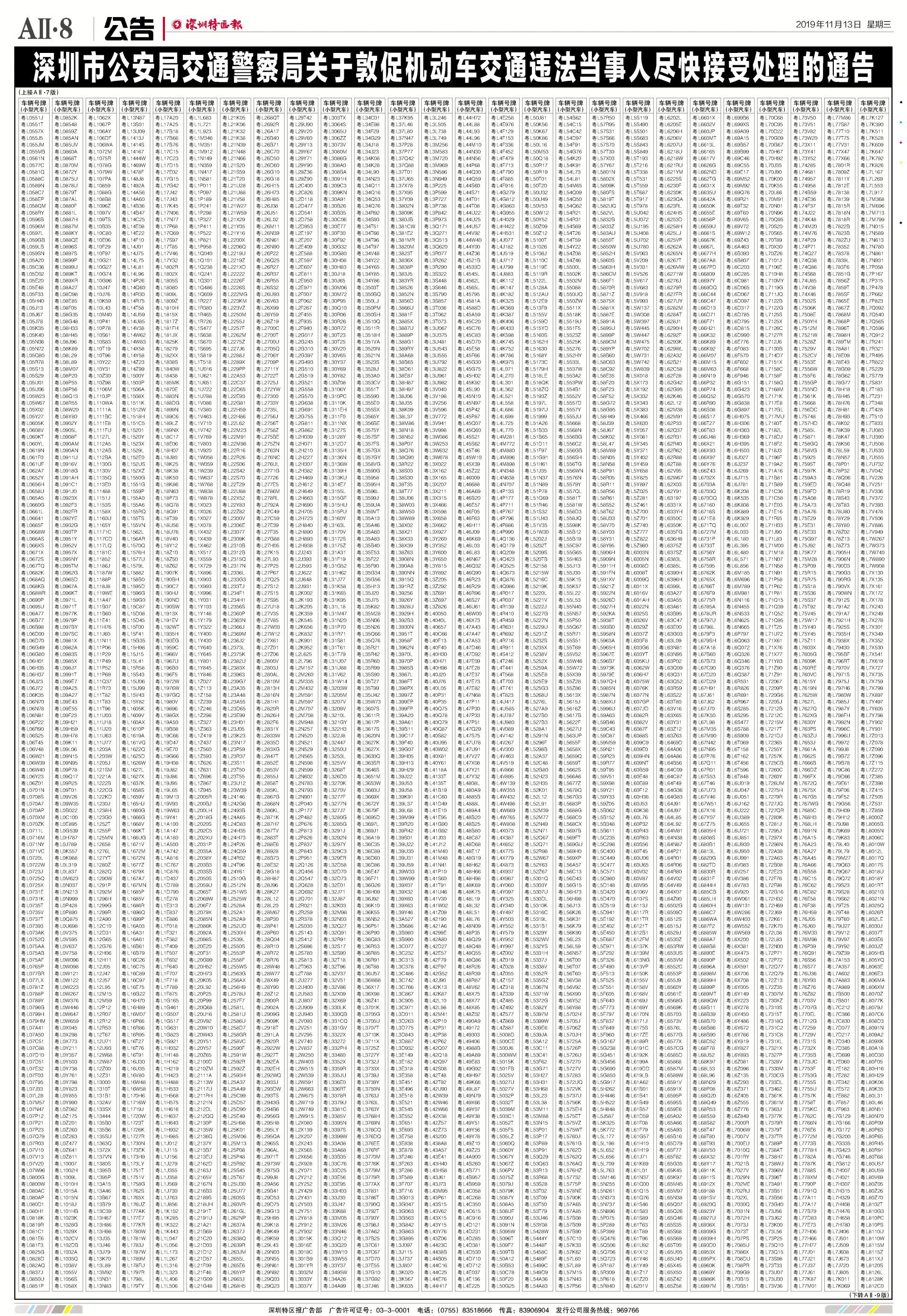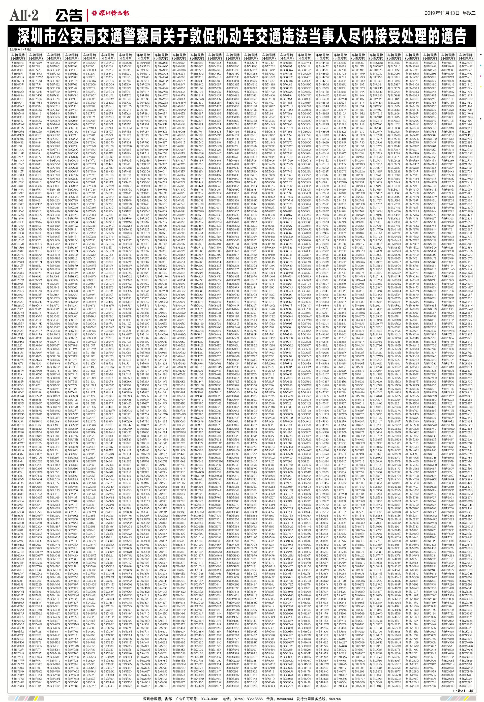 今年7月至10月初,全市機動車被“電子警察”抓拍交通違法行為1342781宗,深圳交警通過多種方式進(jìn)行交通違法行為告知,但截止至目前仍有部分機動車的非現(xiàn)場交通違法未及時處理。