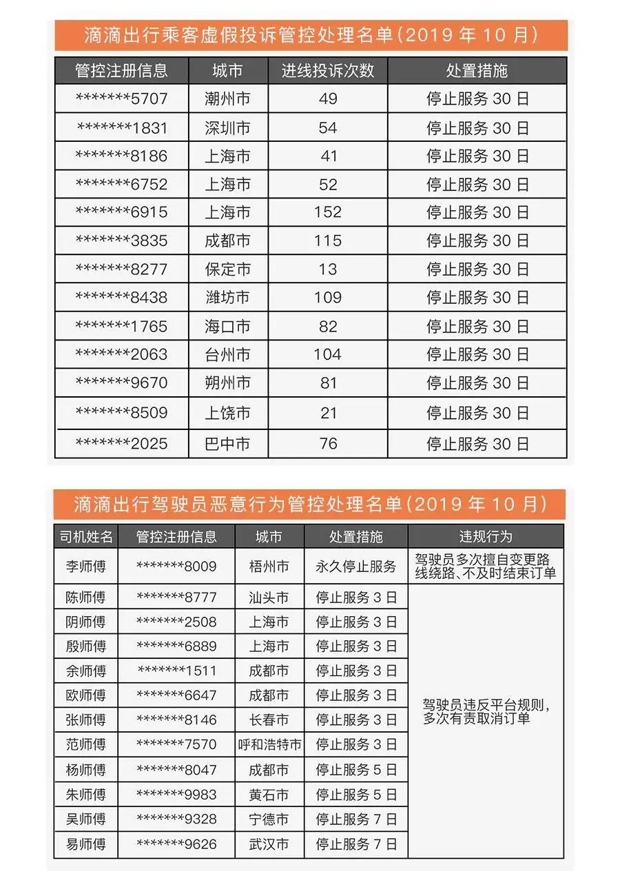 晶報2019年11月20日訊 11月20日,滴滴出行通過官方微信公眾號對10月違規(guī)司、乘“黑名單”進(jìn)行了公示。乘客黑名單中,惡意投訴次數(shù)最多的高達(dá)152次;司機黑名單中一位梧州市的李師傅因多次擅自變更路線繞路、不及時結(jié)束訂單等違規(guī)行為被永久停止服務(wù)。