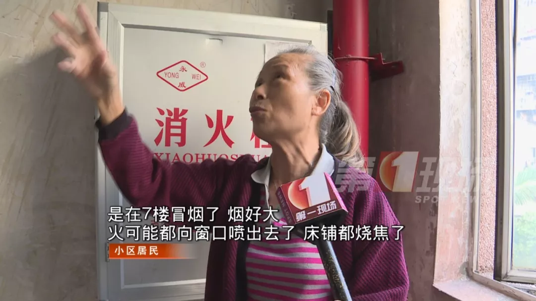 記者到達(dá)現(xiàn)場(chǎng)時(shí),火勢(shì)已被消防救援人員撲滅,樓里的居民正在清理救火時(shí)留下的水跡。據(jù)居民介紹,著火的房子位于7樓,是一間出租屋,里面還住了不少人。