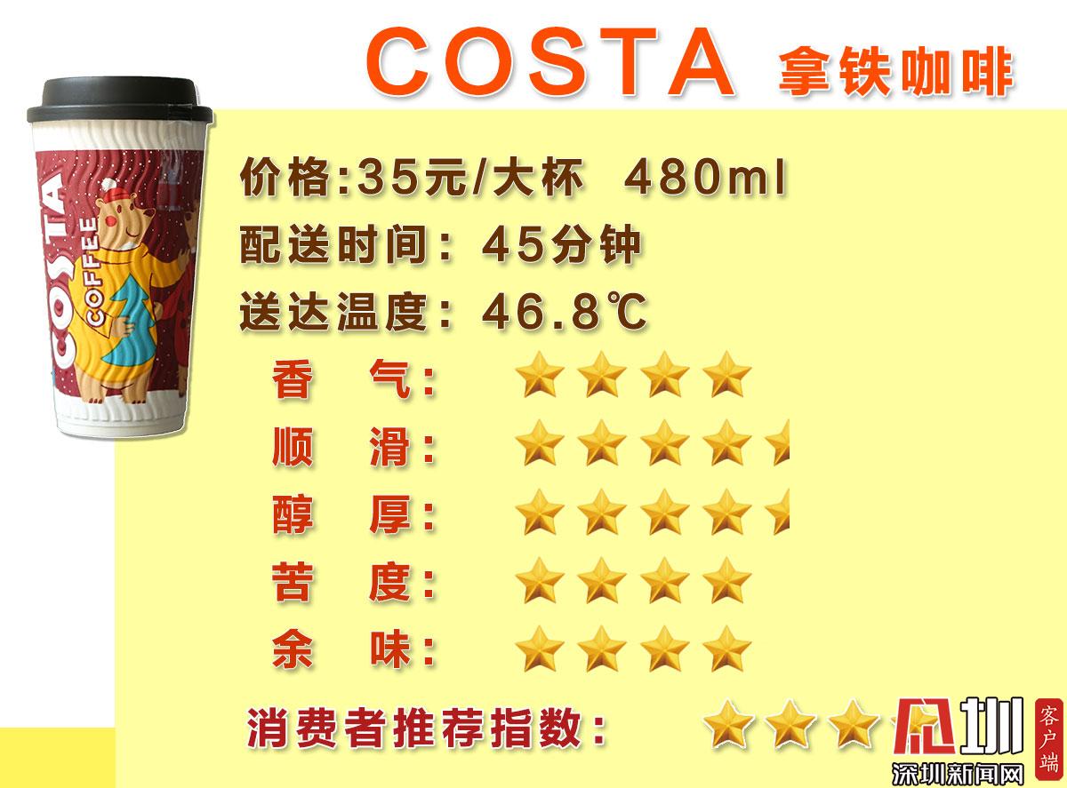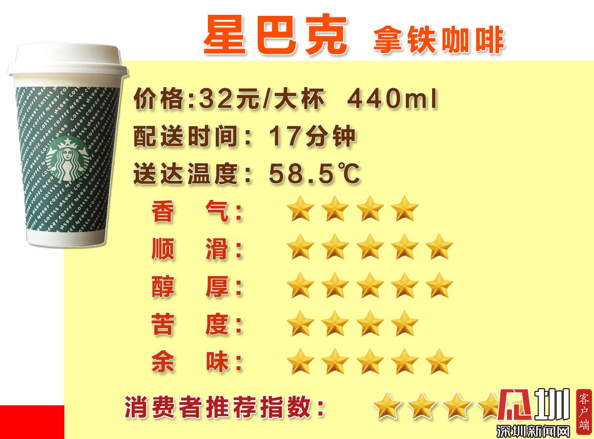 綜合“拿鐵咖啡(熱)”主觀評測的5個維度(香氣、順滑、醇厚、苦度、余味),最終瑞幸在消費者推薦指數(shù)評分中脫穎而出收獲5星好評,星巴克收獲4星半好評位居第二,Costa4、太平洋僅獲得4星評價。