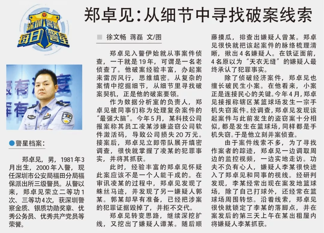 每日警星|鄭卓見:從細(xì)節(jié)中尋找破案線索
