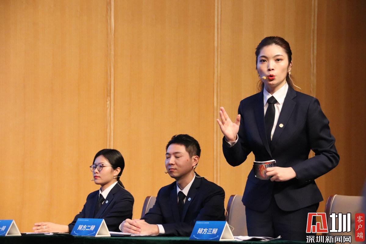 第2個(gè)辯題,辯方三辯李悅在總結(jié)陳詞。李悅來(lái)自北京市盈科(深圳)律師事務(wù)所。