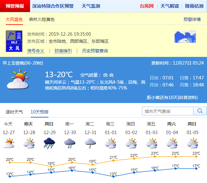見圳客戶端·深圳新聞網(wǎng)2019年12月27日訊 昨日下午冷空氣已經(jīng)開始逐漸影響我市,風(fēng)力有所加大,沿海高地最大陣風(fēng)已達到6-7級。市氣象臺預(yù)測,受冷空氣+臺風(fēng)聯(lián)合影響,29-30日我市將有一次大雨到暴雨降水過程。