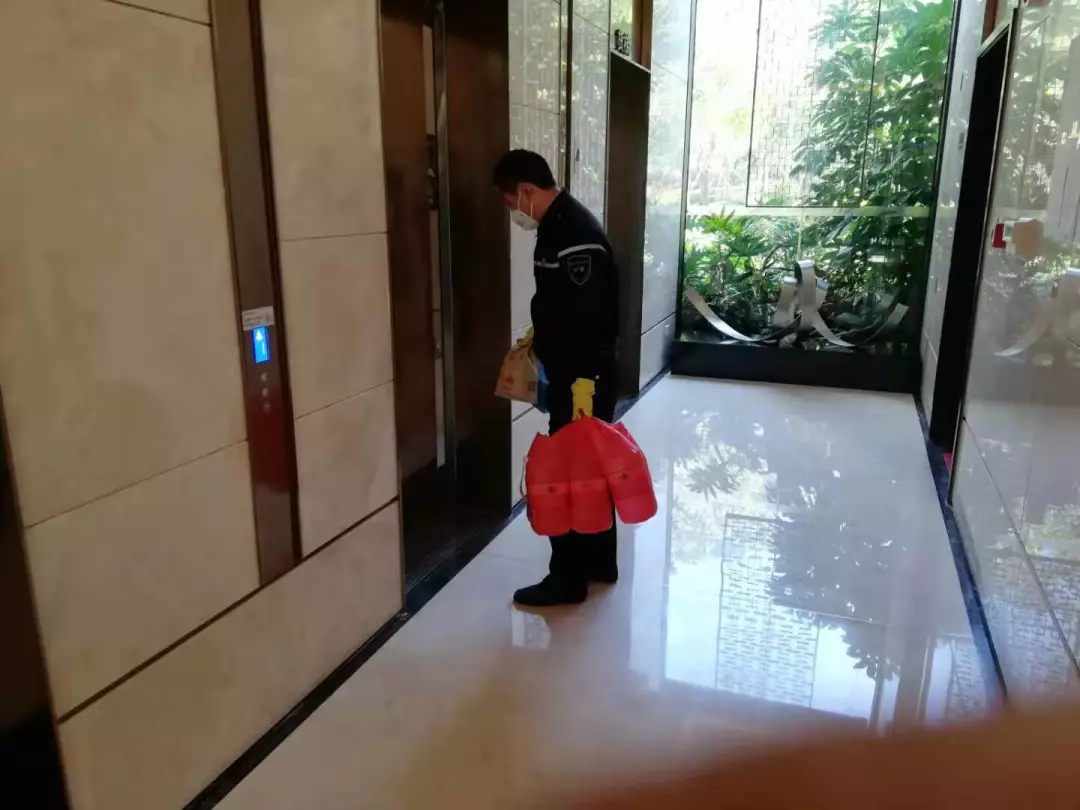 每天對小區(qū)公共區(qū)域大堂門把手、門禁對講機、電梯按鍵、大堂茶幾沙發(fā)等高頻接觸區(qū)進行消毒及對轎廂按鈕定時更換保鮮貼膜。