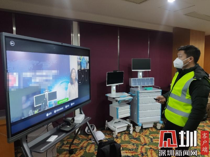 1月31日晚,經(jīng)過半天緊急協(xié)調(diào)和安裝,遠程會診系統(tǒng)調(diào)通 (華為供圖)