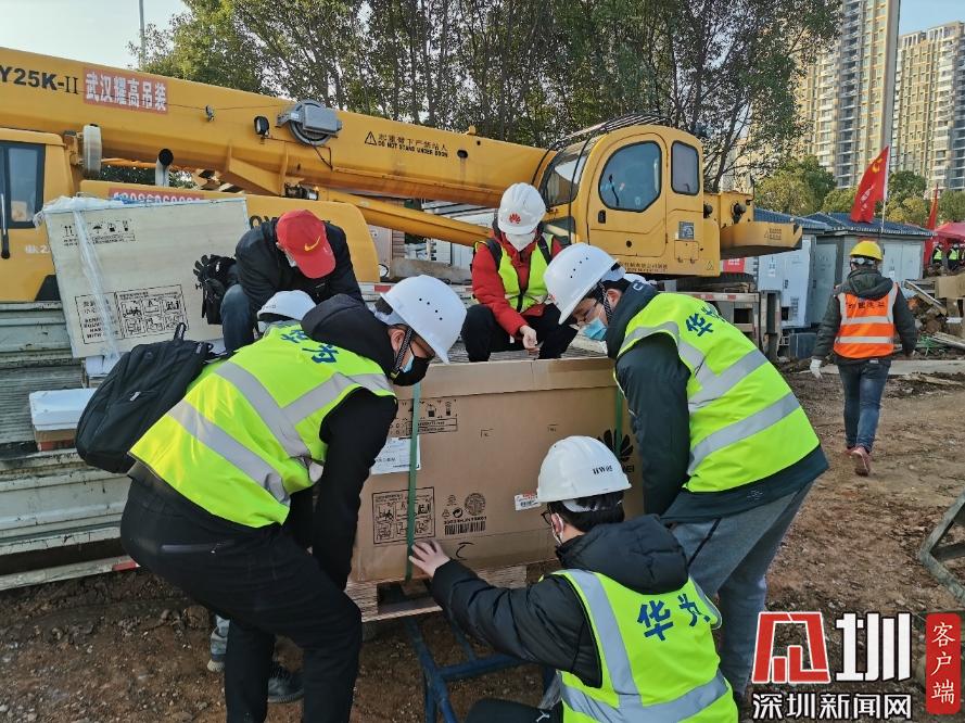 1月31日下午,華為網(wǎng)絡(luò)、視頻會議等設(shè)備緊急運輸進場,準備施工調(diào)測 。 (華為供圖)