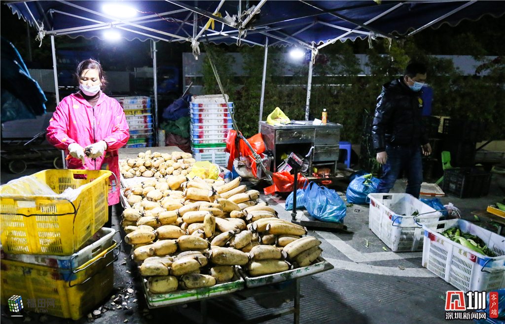 3時40分,來自江西的老張和他妻子就開始為他們經(jīng)營多年的蓮藕、玉米檔口忙活起來,客源主要還是一些老顧客。老張說,最近的農(nóng)批市場管控的比以往嚴格了許多,不帶口罩或者體溫超標(biāo)都不能進市場。