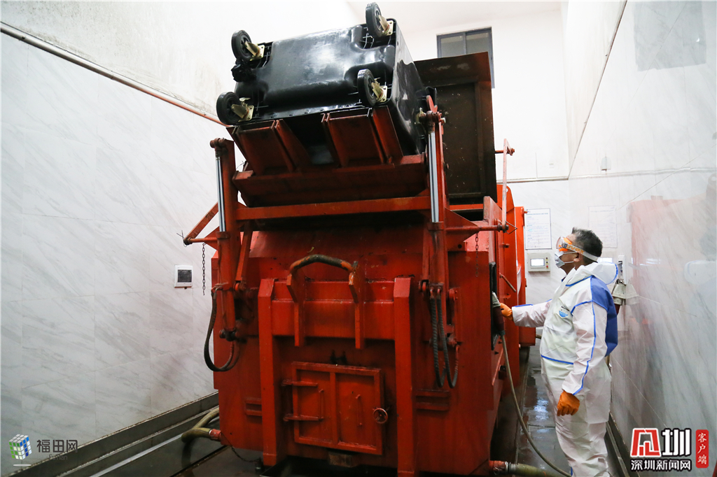 現(xiàn)代化城市生活固然便捷,但是也制造巨量的生活垃圾。垃圾清運人員凌晨3點半起床后開始準(zhǔn)備一天的工作。這段時間,轉(zhuǎn)運站配置1:250的高濃度消毒液,一桶消毒液夠用一個垃圾轉(zhuǎn)運站。記者看到,電動垃圾轉(zhuǎn)運車上的四個環(huán)衛(wèi)消殺工作人員穿著厚厚的白藍色隔離服,全副武裝迎接來自轄區(qū)源源不斷運過來的垃圾桶,隨著垃圾轉(zhuǎn)運車后滋滋作響的電流聲,車后的平板放下來了,一桶桶垃圾平穩(wěn)有序的拽拉進垃圾轉(zhuǎn)運站進行壓縮,因工作服的關(guān)系,工作人員眼罩上經(jīng)常被一層厚厚的水霧糊上,工作期間會把手套摘除后,從手心處甩出一把把汗。
