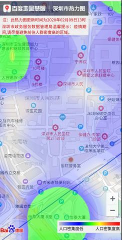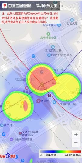 隨著春節(jié)假期結(jié)束,市民陸陸續(xù)續(xù)返回深圳。大量人員聚集、流動(dòng)將對(duì)疫情防控帶來(lái)新的考驗(yàn)。防治疫情一個(gè)重要的途徑就是避免去人多的地方,如何才能知道哪里人多呢?近日,深圳市政務(wù)服務(wù)數(shù)據(jù)管理局聯(lián)合百度地圖慧眼上線了深圳城市“熱力圖”產(chǎn)品。用戶可通過(guò)“i深圳”APP中疫情防控服務(wù)專(zhuān)區(qū)的人流熱力圖圖層,查看全市各區(qū)域?qū)崟r(shí)人口流量密度,供出行參考。