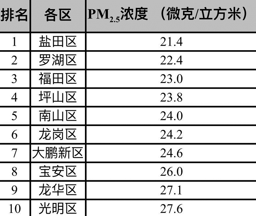 馬田、新安、觀瀾街道倒數(shù)!深圳1月份PM2.5濃度排行榜出爐