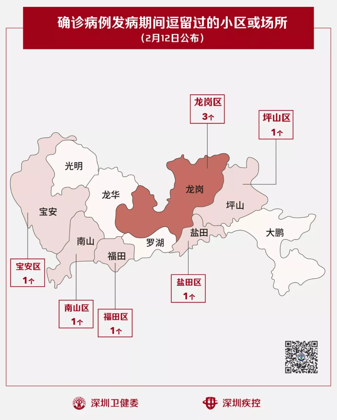經(jīng)過(guò)疾控專(zhuān)業(yè)人員的流行病學(xué)調(diào)查確認(rèn),2月11日,深圳新公布8個(gè)小區(qū)(場(chǎng)所),有新確診的病人曾在發(fā)病期間逗留。