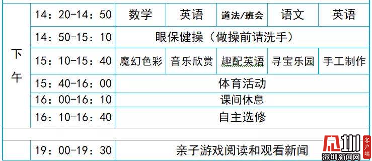 網(wǎng)課的課程表和正式上課的課程表還是有所不同的。比如福田區(qū)景蓮小學(xué)的課程表是全校統(tǒng)一,上午下午各有2節(jié)課,每節(jié)40分鐘(老師講課15分鐘,學(xué)生自己線下做課堂練習(xí)25分鐘)。該校二年級(jí)今天上的科學(xué)課和音樂課就緊扣新冠肺炎疫情防控,科學(xué)課用動(dòng)畫視頻講解新冠病毒的原理,并請(qǐng)小朋友自己畫一幅新冠病毒的圖;音樂課則是播放教唱《加油歌》《奉獻(xiàn)》,向疫情防控的逆行勇士致敬。