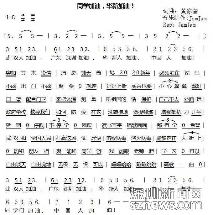 福田區(qū)教科院在線教學(xué)巡查員徐奇志老師說:“華新小學(xué)以一曲本校音樂老師黃家音老師作詞作曲的《同學(xué)加油華新加油》開啟了開學(xué)第一課,表達(dá)了華新小學(xué)全體師生對(duì)武漢的祝福,對(duì)自由呼吸新鮮空氣和校園生活的向往,還有師生們期待勝利曙光的決心?!?/p>