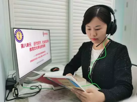寶安區(qū)官田學(xué)校歷史老師劉紅玉在家錄制網(wǎng)課。寶安日報記者宋璐攝