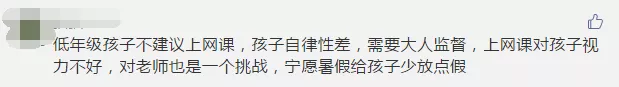 有些參與者則直接留言:由于孩子自律性差,建議低年級不上網(wǎng)課。