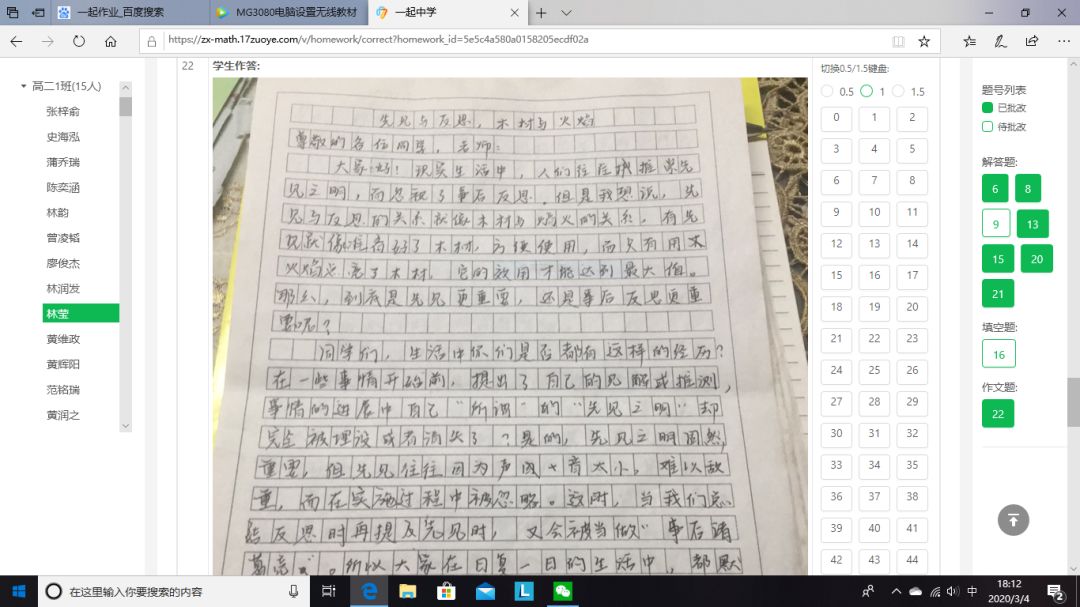 早在網(wǎng)課開始第二周,針對老師們對網(wǎng)課效率不高的顧慮,高二年級就做了一次網(wǎng)上調(diào)查,絕大部分老師贊成進行一次網(wǎng)上考試,以檢驗網(wǎng)課的學(xué)習(xí)效果,以便調(diào)整教學(xué)。之后,學(xué)校開始著手準(zhǔn)備網(wǎng)上考試,向技術(shù)平臺提交學(xué)生和老師信息,下發(fā)《一起作業(yè)學(xué)生注冊登錄指引》和《一起作業(yè)教師作業(yè)批改操作指南》。年級各備課組開始命題,為了檢驗二實“線上學(xué)堂”的實效,學(xué)校要求命題的范圍以直播課內(nèi)容為主,兼顧寒假作業(yè)??记耙恢?,各備課組都上交平臺進行試卷制作。2月26日,網(wǎng)上作業(yè)批改功能正式上線,高二年級要求備課組在考試之前至少利用線上平臺布置批改一次網(wǎng)上作業(yè),積累經(jīng)驗,提醒平臺改進不完善的問題,及時更新,同時讓學(xué)生和老師熟悉操作技巧。備課組在考前都向?qū)W生發(fā)布了考試注意事項,要求學(xué)生豎拍照片,注意字跡大小和拍照清晰度,單題上傳,試卷在閱讀頁面和題目設(shè)置也做了優(yōu)化,大大方便了學(xué)生答題,有效減輕老師改卷負擔(dān),提高了閱卷的效率。