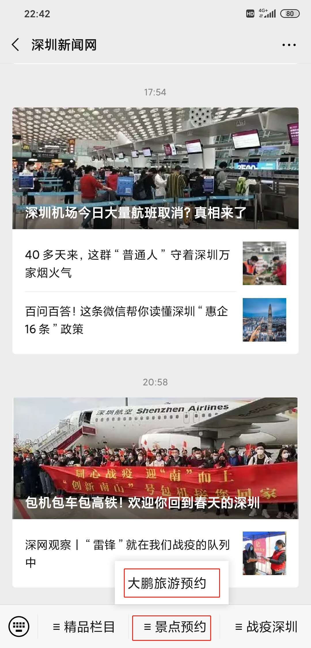⑨3月6日起至疫情防控期結(jié)束,配合大鵬新區(qū)兼顧疫情防控和旅游景區(qū)、住宿業(yè)發(fā)展的前提下,采取分類分步方式開放旅游景區(qū)工作,“疫情防控期大鵬新區(qū)旅游預約平臺”正式上線,即日起所有前往新區(qū)游客(含住宿與非住宿)出發(fā)前3至1日均需進行實名預約。(預約方式請見下圖)