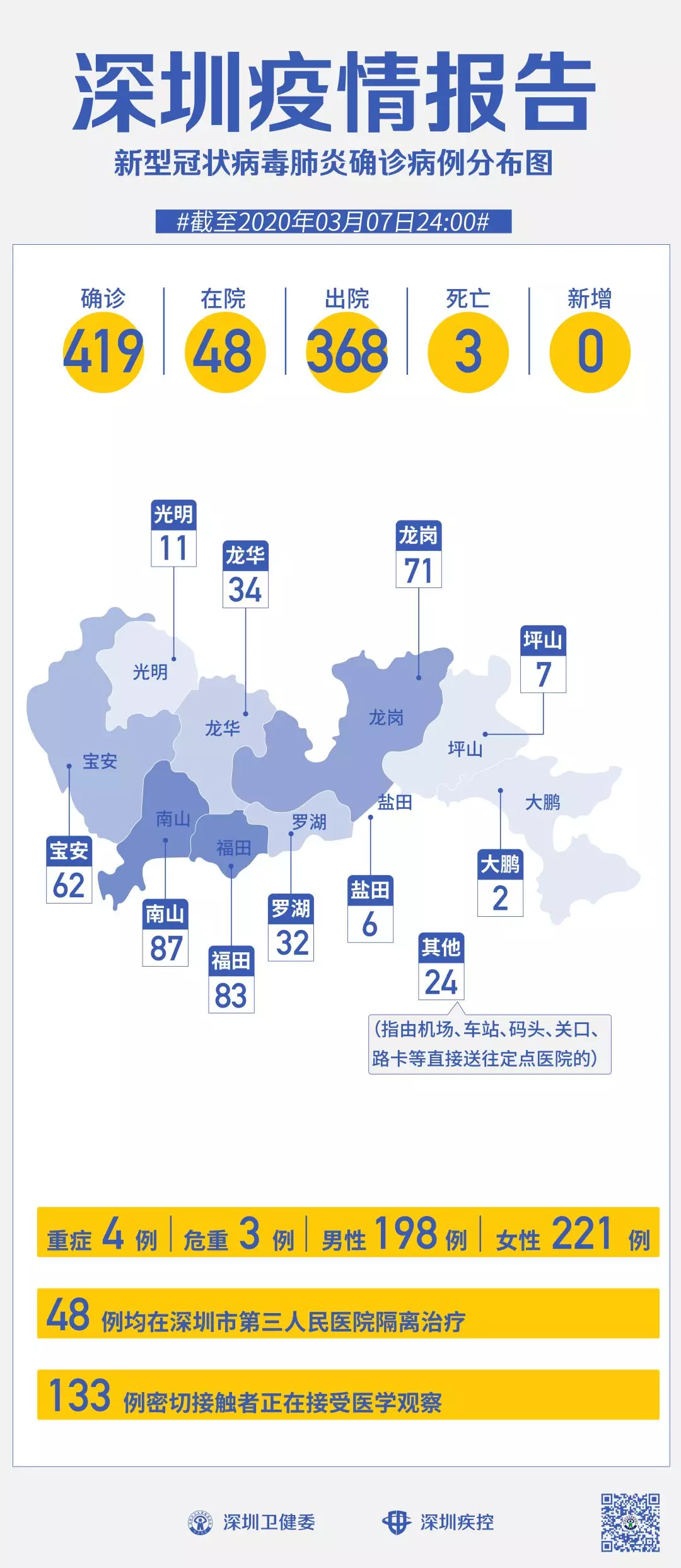 深圳“0”新增!累計419例,在院48例(截至3月7日)