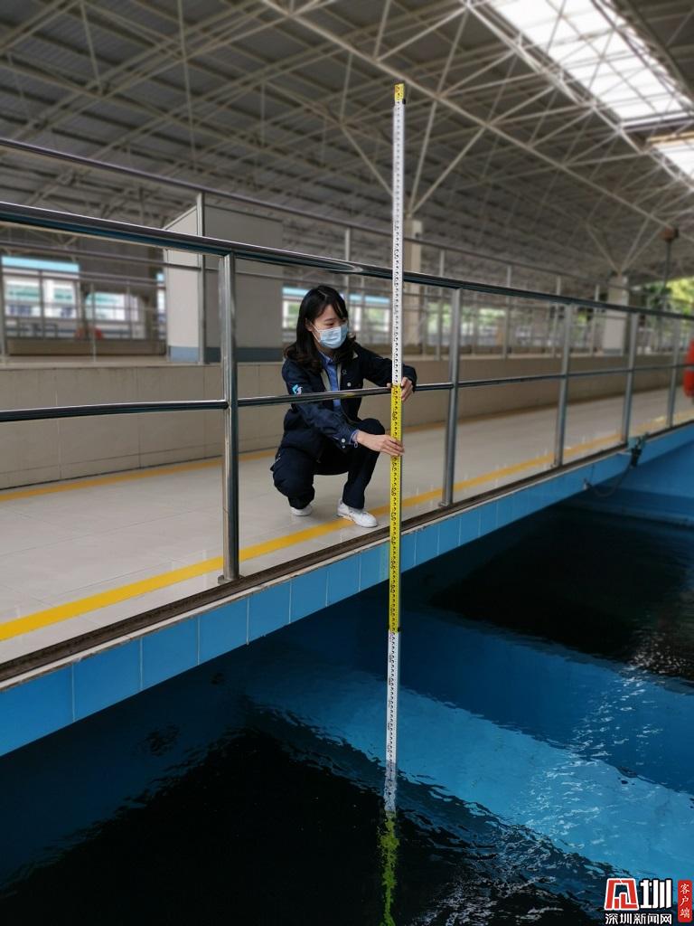 一點(diǎn)一滴,做到最好。每一滴水都飽含深水人的大愛(ài),每一滴水都是深水人的莊嚴(yán)承諾。水務(wù)集團(tuán)梅林水廠工程師王姝凡,正檢測(cè)炭濾料厚度變化。