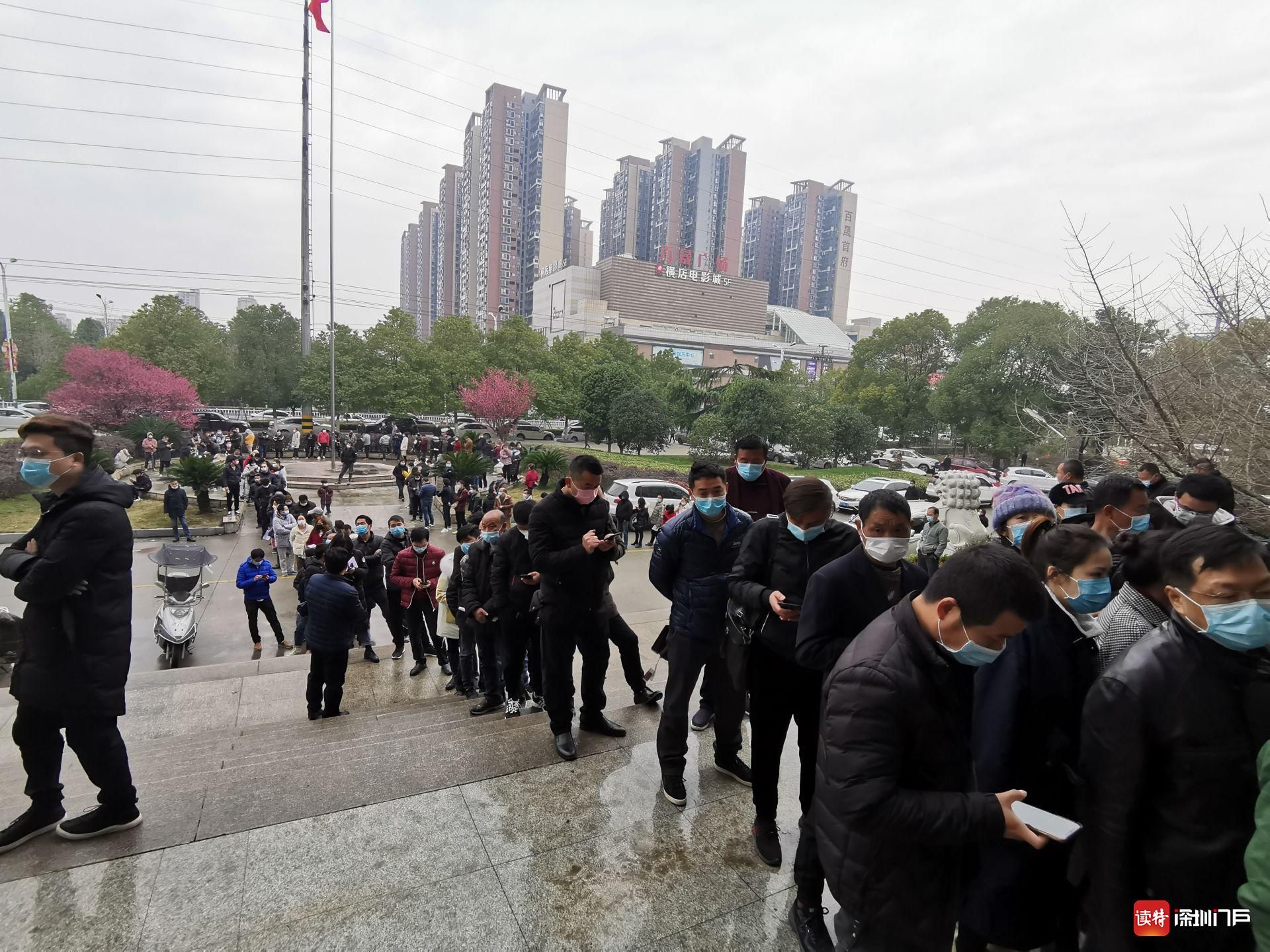 2月23日,監(jiān)利縣交通局門前排隊申請返回工作地的當(dāng)?shù)厝罕?。不久,湖北再次升級封控措施,直到近日才逐漸恢復(fù)正常交通。