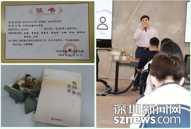 多年來,孫立志老師一直努力實踐“快樂語文”“和語文生活化,生活語文化”的大語文教學理念,提倡并身體力行在語文教學實踐中,創(chuàng)設(shè)生活化的情境,讓語文教學與社會實踐緊密結(jié)合,激發(fā)學生興趣,引導學生深入創(chuàng)新思考和個性表達,真正形成較強的語文能力,引導學生成長為有學養(yǎng)、有高度、有見地、有情懷的大寫的人。他認為,由于語文學科的工具性和人文性兼具的特性,語文教學對老師的要求較高,語文老師除了要做淵博的閱讀者、深刻的思想者、勤奮的寫作者、敬業(yè)的教育者,還要努力做一個興愛好廣泛、生動有趣的學生心理上的“同齡人”,千方百計引導學生體驗閱讀與思考,創(chuàng)新與寫作的樂趣,從而激發(fā)學生的語文學習的內(nèi)驅(qū)力,真正達到“教是為了不教”的目的。為此,孫立志老師在勤奮教學并取得優(yōu)異成績的同時,努力讓語文教學真正在學生人生打下深深印記,奠基學生終生發(fā)展,他做了很多探索:開系列講座給學生講《春秋戰(zhàn)國——牛人的黃金時代》,開發(fā)全市繼續(xù)教育課給老師講《東周典型人物研究》,耕耘微信公號笑談歷史風云,開發(fā)深圳市好課程《中學生創(chuàng)意作文訓練》,帶領(lǐng)學生公開出版深圳第一部班級學生集體著作《梧桐花開》,指導大批學生在各級各類刊物發(fā)表文章,在各類語文比賽樂促教,以歌助學,只不過是孫立志老師教學探索創(chuàng)新的一葉一花,相信師者每一點守責盡心的努力,都會助力學生人生之樹上結(jié)出香甜的果實。