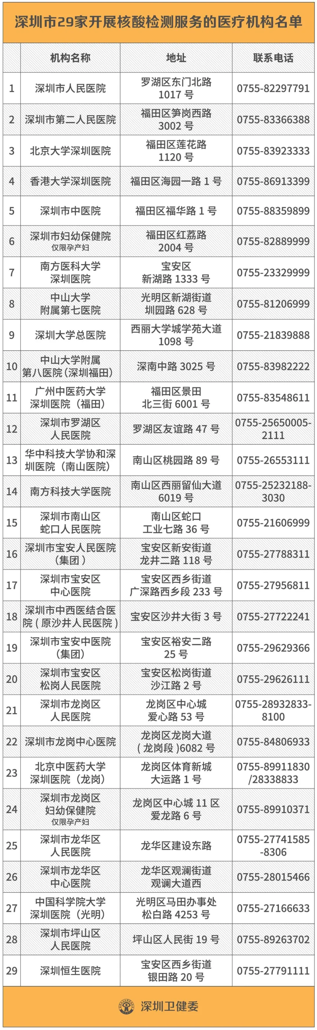 深圳“0新增”!市民可到這29家醫(yī)院測核酸!