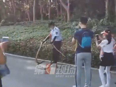 據(jù)蓮花山公園管理處工作人員介紹,昨天下午有游客發(fā)現(xiàn),兩條體型碩大的蛇突然在人行道旁邊的草叢出沒(méi),嚇壞了不少路過(guò)的游客。隨后,一名公園內(nèi)的保安人員,徒手捕捉了兩條蛇。