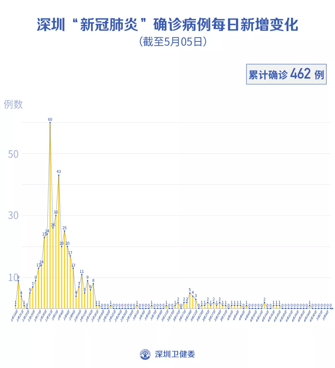 截至5月5日24時,深圳累計報告新冠肺炎病例462例。5月5日當(dāng)天新增出院1例。
